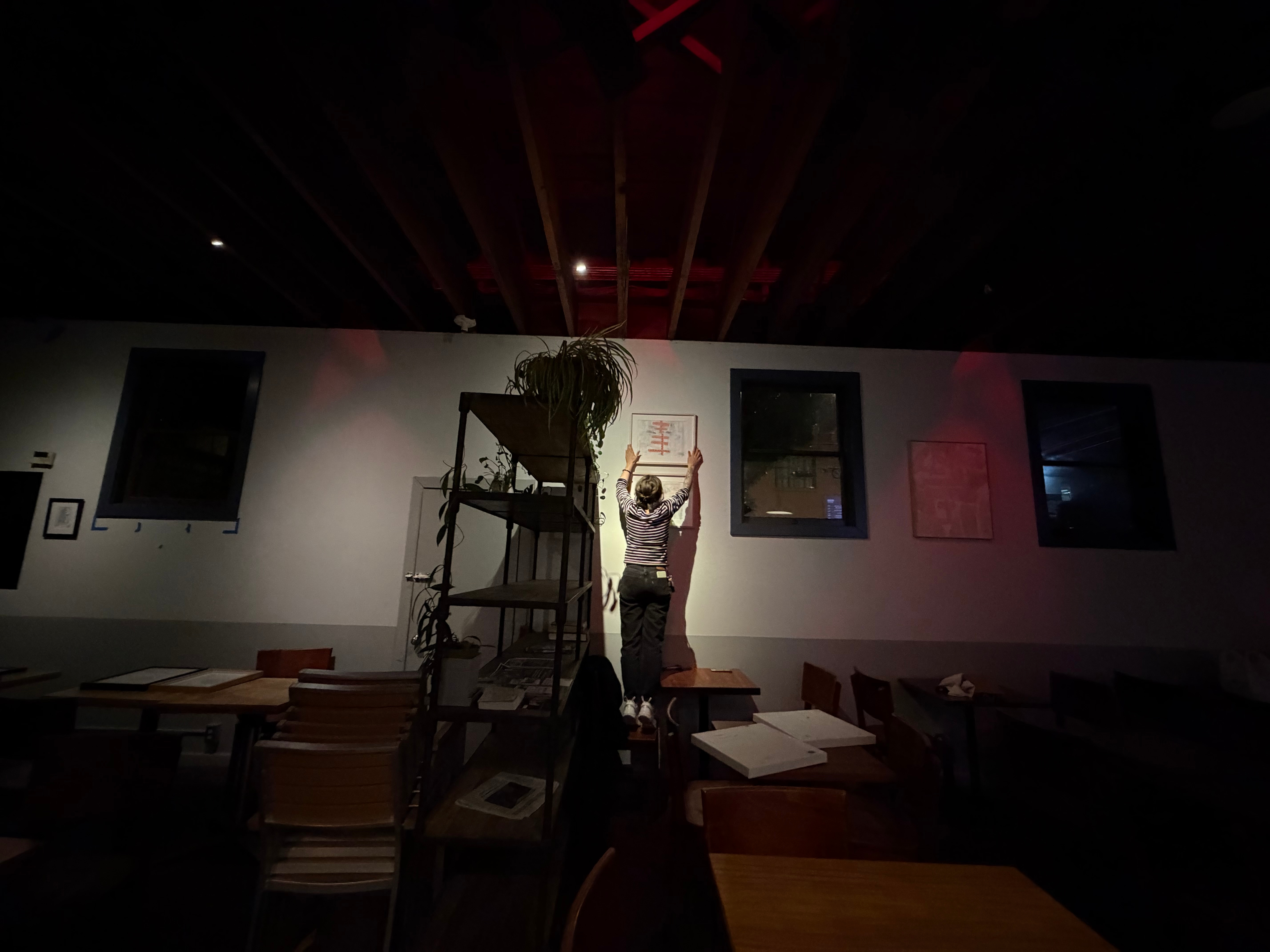 About a month ago, I shared THEM CATS with the baristas at the Atlas Café. It’s a place I’ve been going to for almost 20 years. And, I’ve always wanted to show my work there—yes, the local coffee house. I didn’t get an opportunity until then. Kate was open, and a few days later, I decided to not go it alone and invite my friend, Alessia Pope, to show her work too—because, she’s awesome.